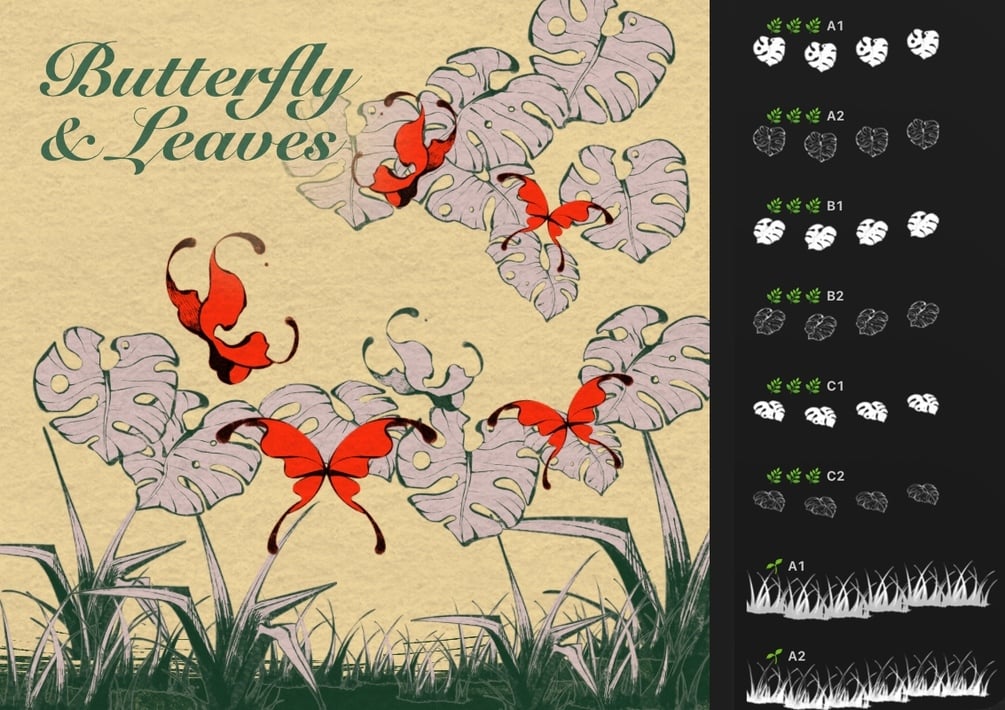 [procreate] Free Butterfly & Leaves - stamp brushes